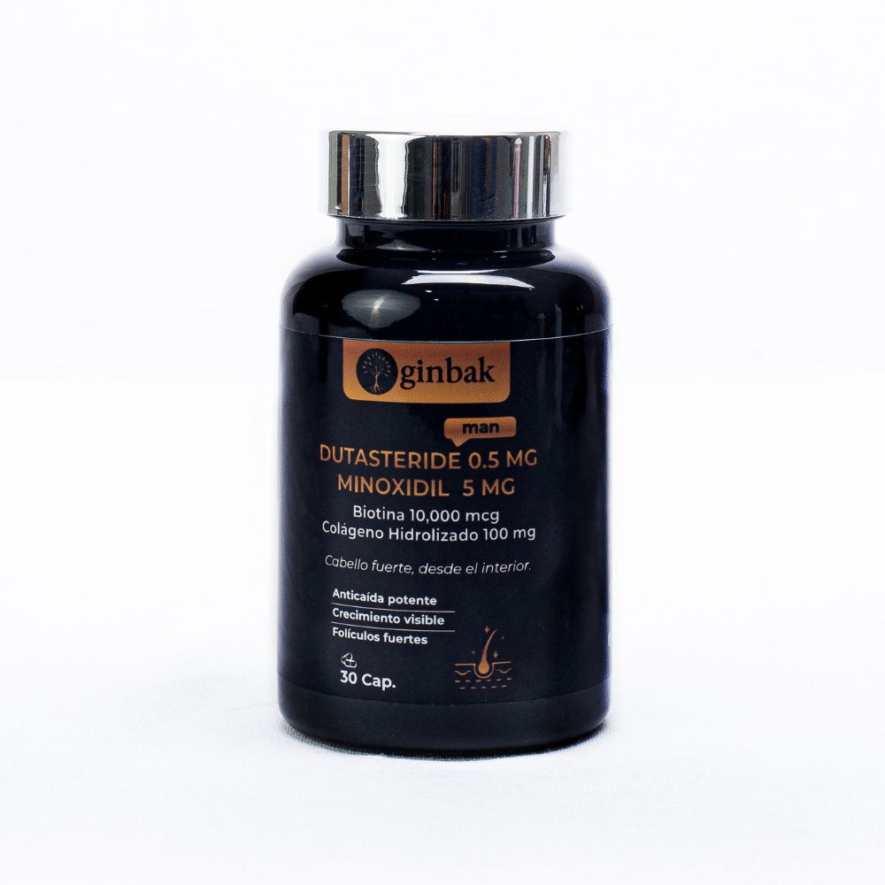 GINBAK combina cuatro potentes ingredientes activos que actúan en sinergia para detener la caída, estimular el crecimiento y fortalecer la raíz capilar desde el interior: